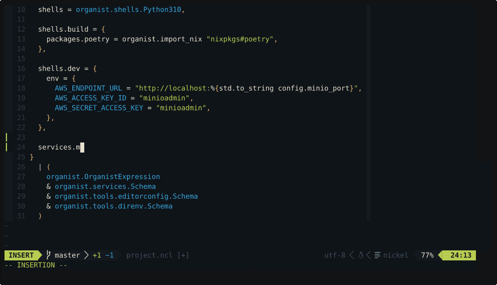 For instance, we can leverage Organist to generate us a good EditorConfig configuration (84bf28) or even integrate with the awesome direnv to provide automatic reloading of the environment (84696f).